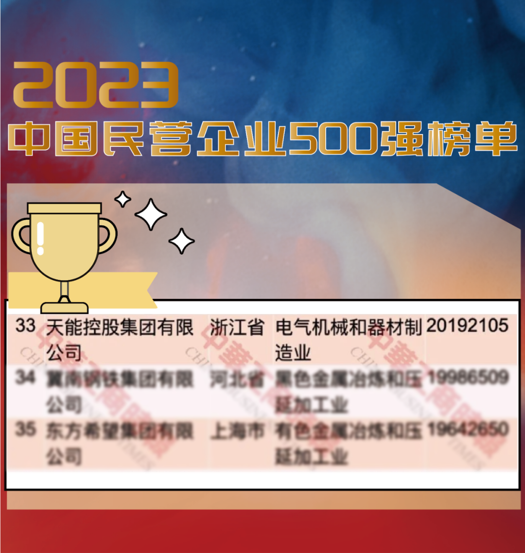 第33位!今年会在中国民企500强榜单跃升7名